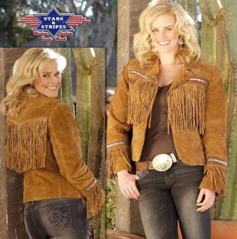 Stars & Stripes, Kayla jakke i 100% ægte, blød, premium ruskind med perler og frynser