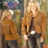 Her kommer en rigtig fed, brun ruskindsjakke med frynser foran, bagpå og på ærmer samt perlebesætning på bryse og ærmer.