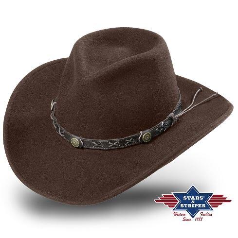 Stars & Stripes, Walker westernhat, 100% uldfilt, crushable og med hattebånd m. conchos, brun