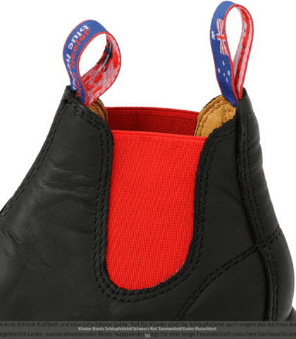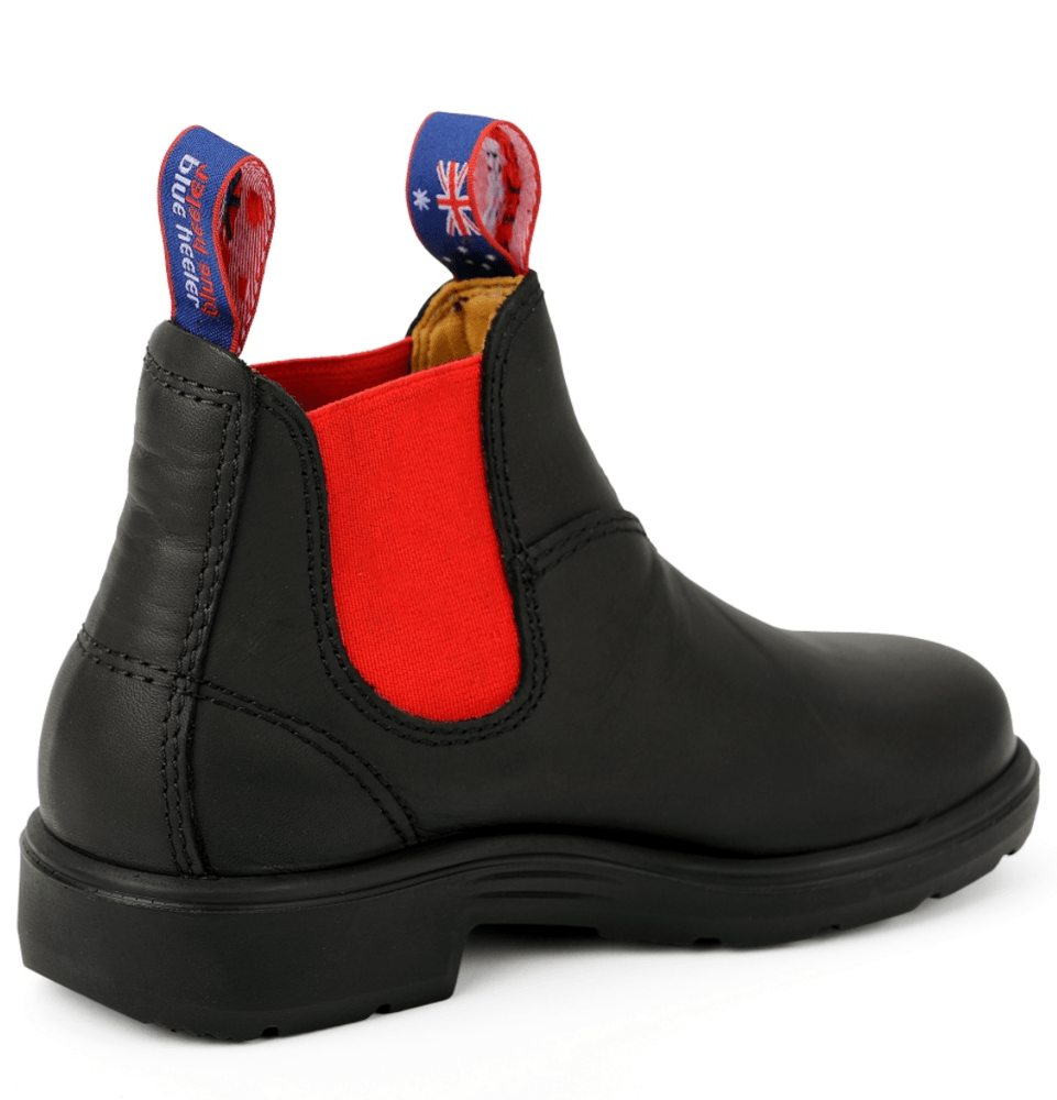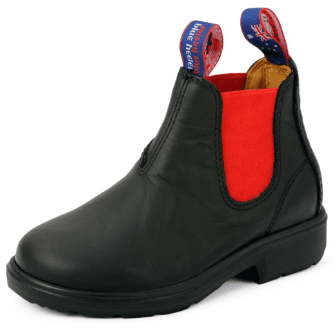 Blue Heeler Kids Tasman Devil, Chelsea børne læderstøvler, Black/Red