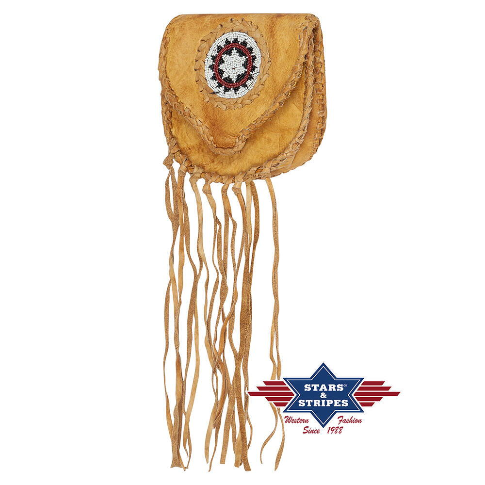 Tasken har effektive farveaccenter i form af et fint perlebroderi på forsiden og er også udstyret med frynser, flettede kanter og et lille Stars & Strips metal-logo.