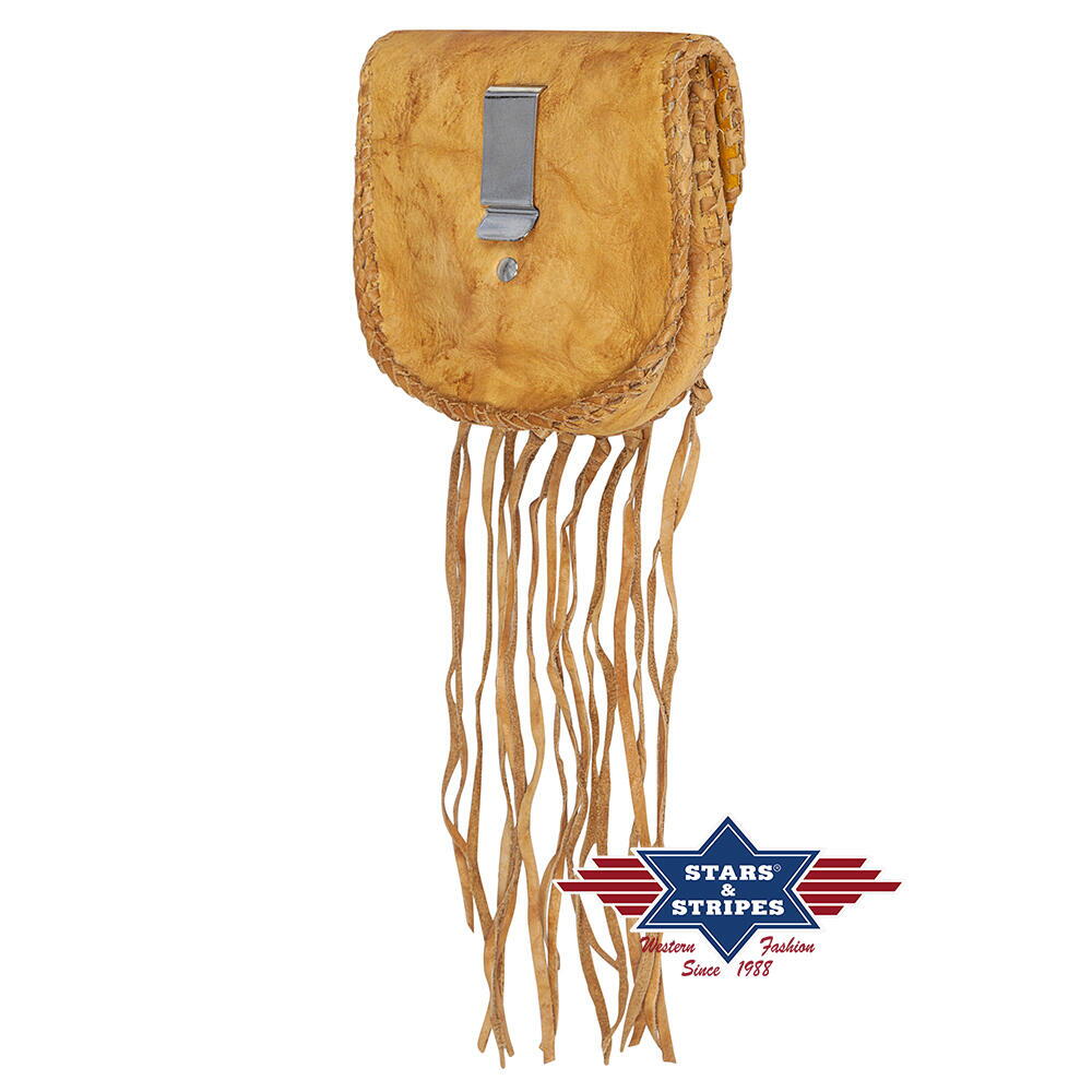 Stars & Stripes, Anoki, beige bæltetaske i 100% okselæder med frynser