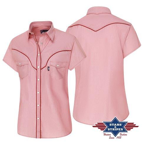 Stars & Stripes, kortærmet Western dameskjorte i lyserød