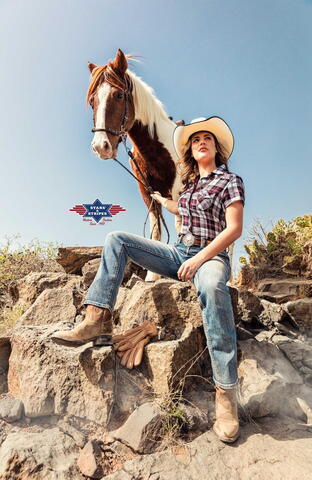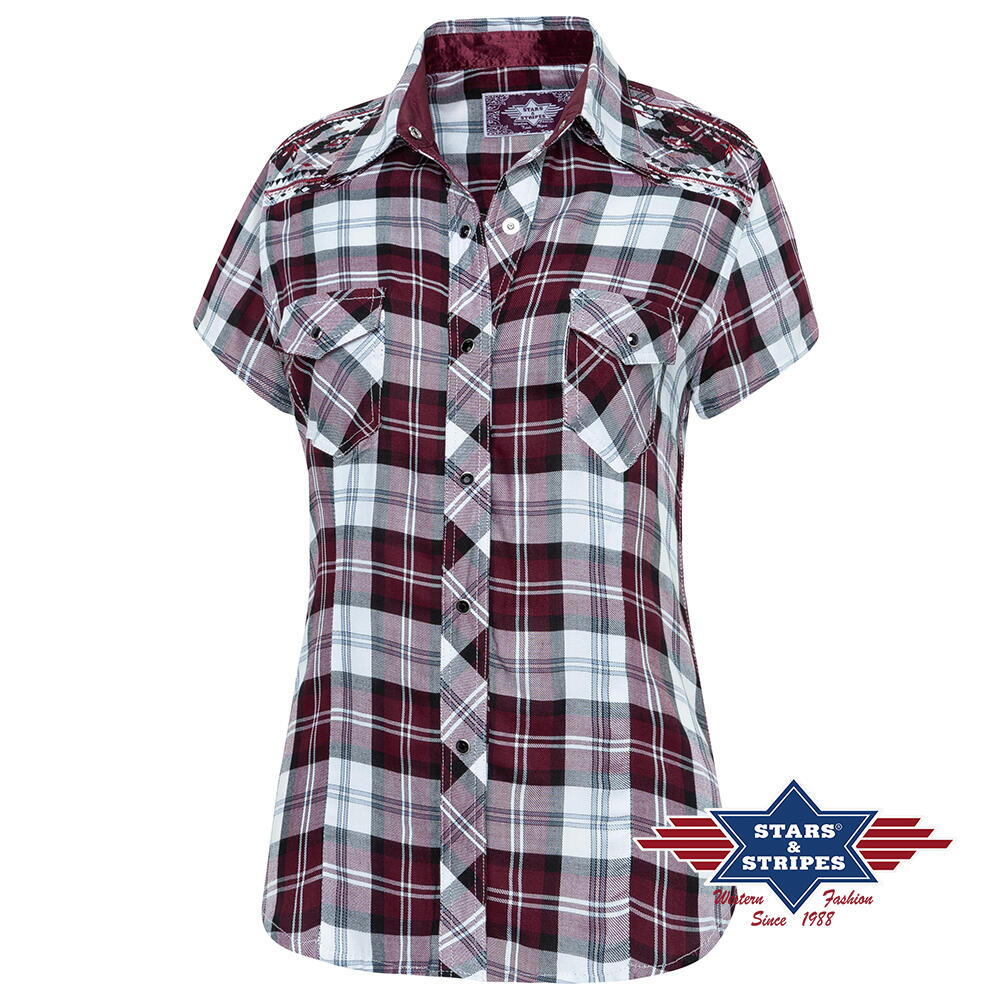 Stars & Stripes, Pasadena, kortærmet, rød-/hvidternet dameskjorte