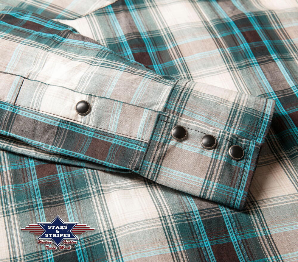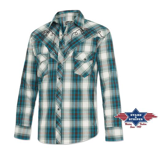 En fed, ternet langærmet skjorte med flotte syninger på skuldrene foran og bagpå.