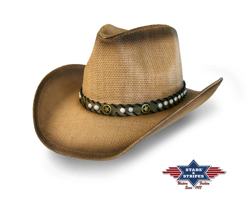 Stars & Stripes, Monterry western stråhat med formbar skygge, conchoer og nitter