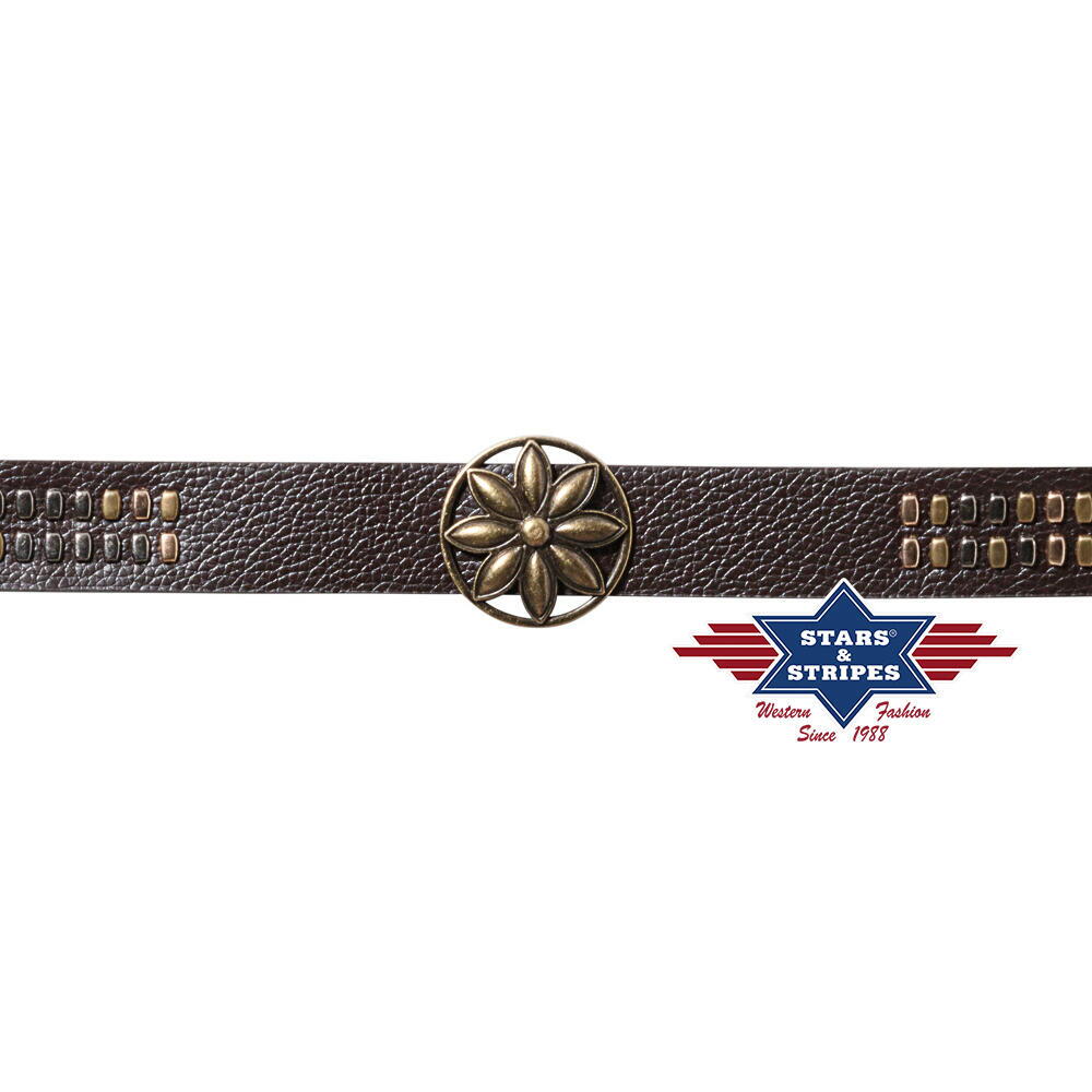 Hattebånd med nitter og blomsterconcho er fra Stars & Stripes og passer til de fleste hatte - både mørke og lyse.