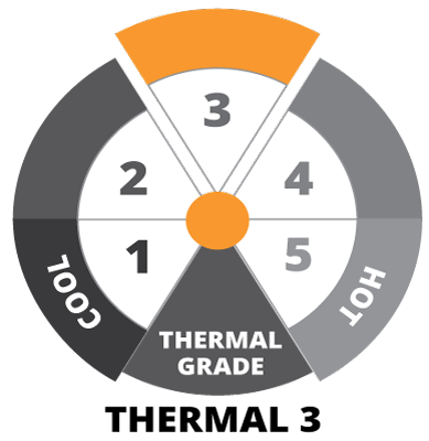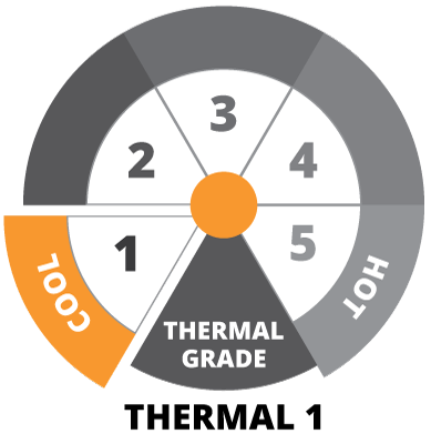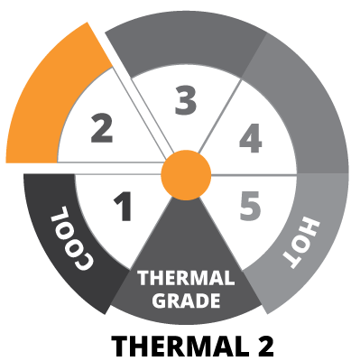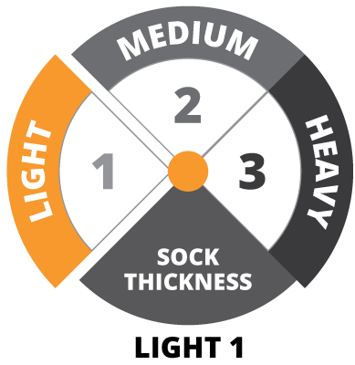 Uphillsport-sokker har termiske kvaliteter fra 1 til 5, nr. 1 er den køligste og nr. 5 den varmeste.