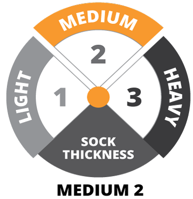 Forskellige produktkategorier har individuelle materialer og strukturerede løsninger, der bygger på efterspørgslen efter den aktive eller sportslige præstation. Forskellige materialer som Merinould, Upcycled uld og bomuld, Coolmax, Bambusviskose, Økologisk bomuld, Polyamid, Polypropylen, Polyester, Twaron og Lycra, giver os en bred vifte af temperaturgraderinger og funktioner. Alle Uphillsport-produkter er klassificeret individuelt efter materiale og strikkestruktur, tykkelsen er inddelt i Light (L), Medium (M) og Heavy (H). Anden individuel klassificering foretages med Temperatur/varmefunktion fra 1-5. Du kan finde klassificeringer i vores produktbeskrivelser. F.eks. L3, der betyder der er en let tykkelse sok med temperaturklasse 3.